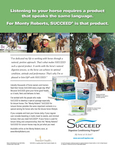Performance horses are especially prone to gut issues, thanks to the stress of competition, boarding in stalls, and high grain diets. I’ve also come to learn about SUCCEED. It’s a natural way to help keep your horse’s stomach and colon functioning the way it should, while competing and training.
